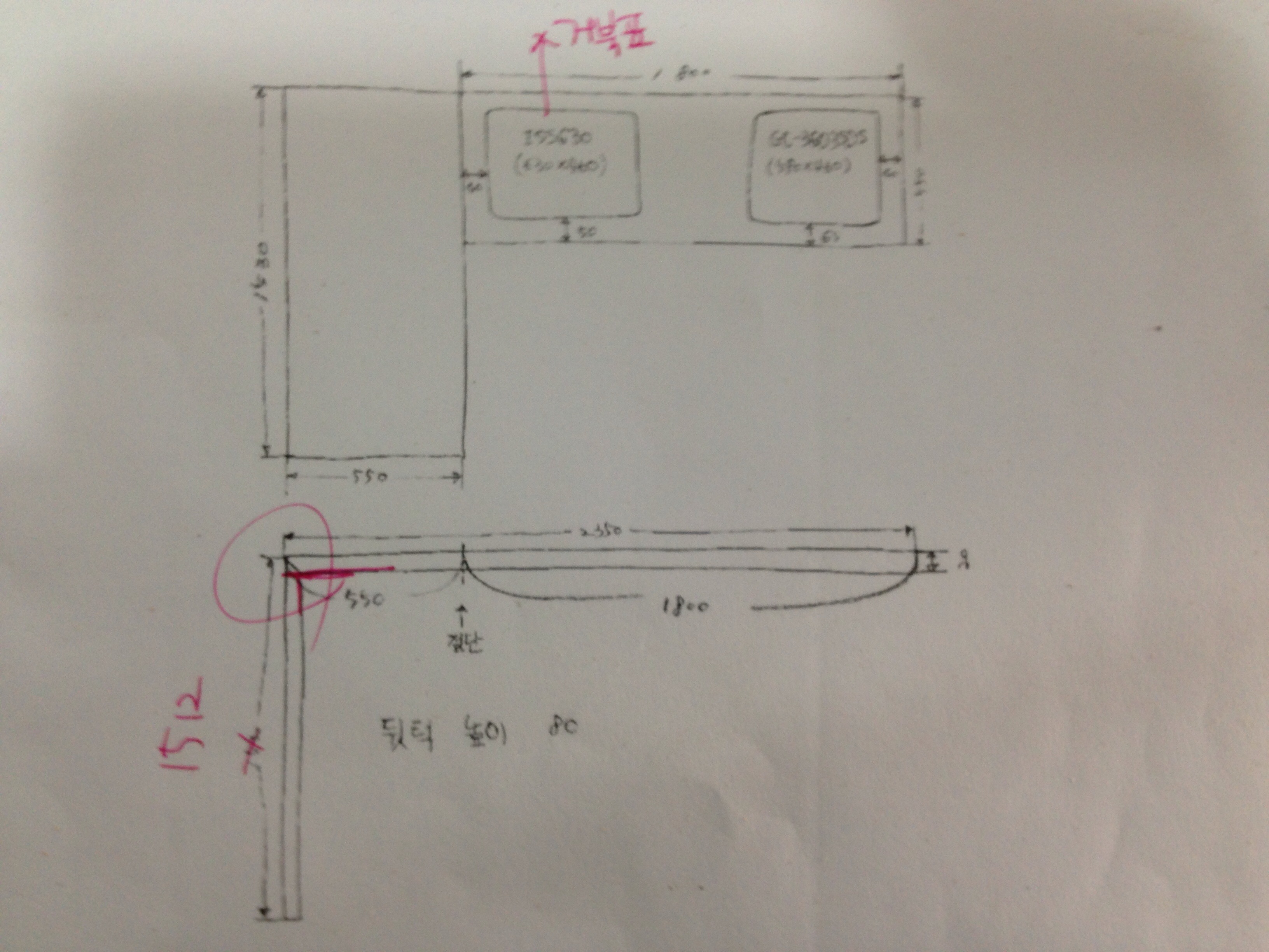 원목(특수목) 싱크대상판 쿡탑(가스렌지) 가공비용 20,000원