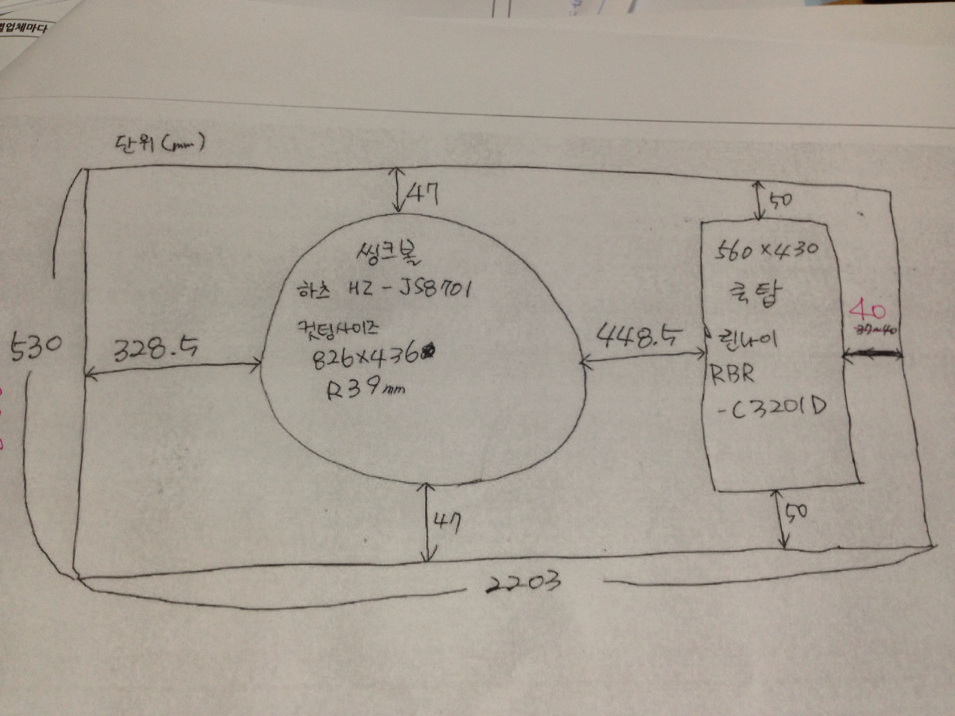 원목(특수목) 싱크대상판 쿡탑(가스렌지) 가공비용 20,000원