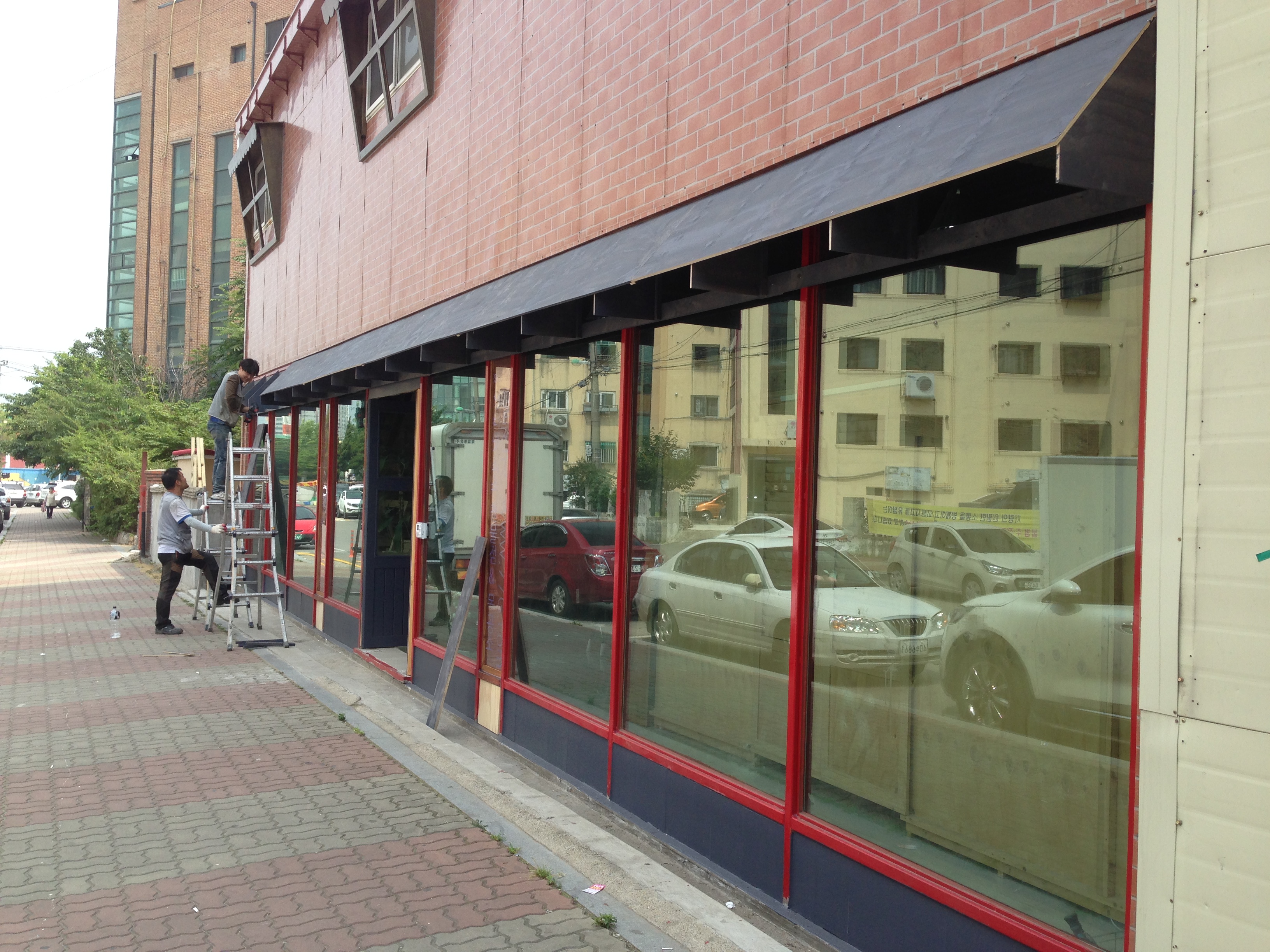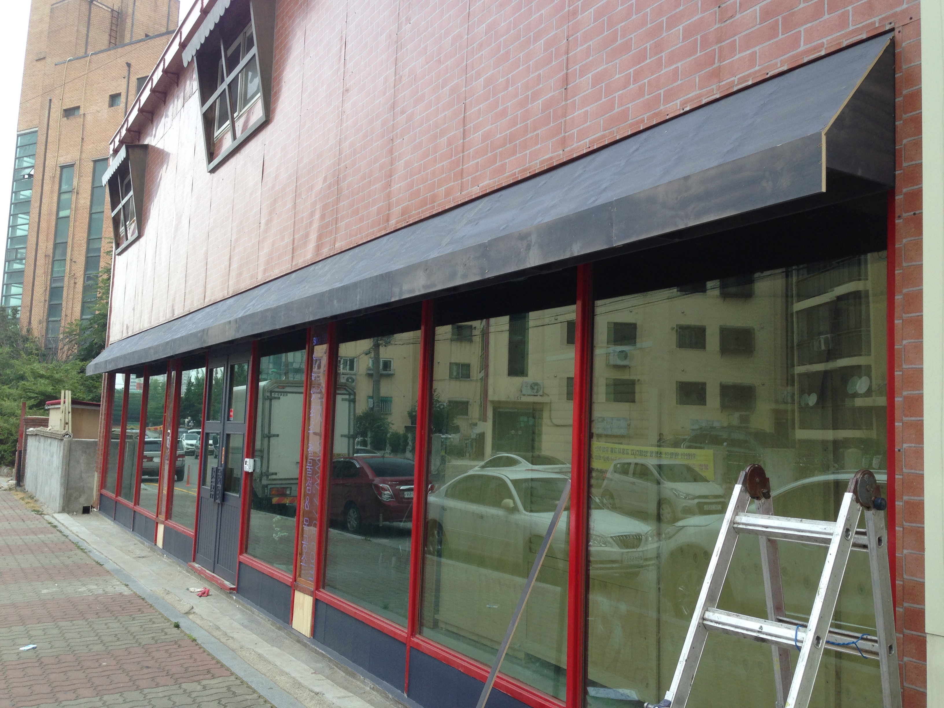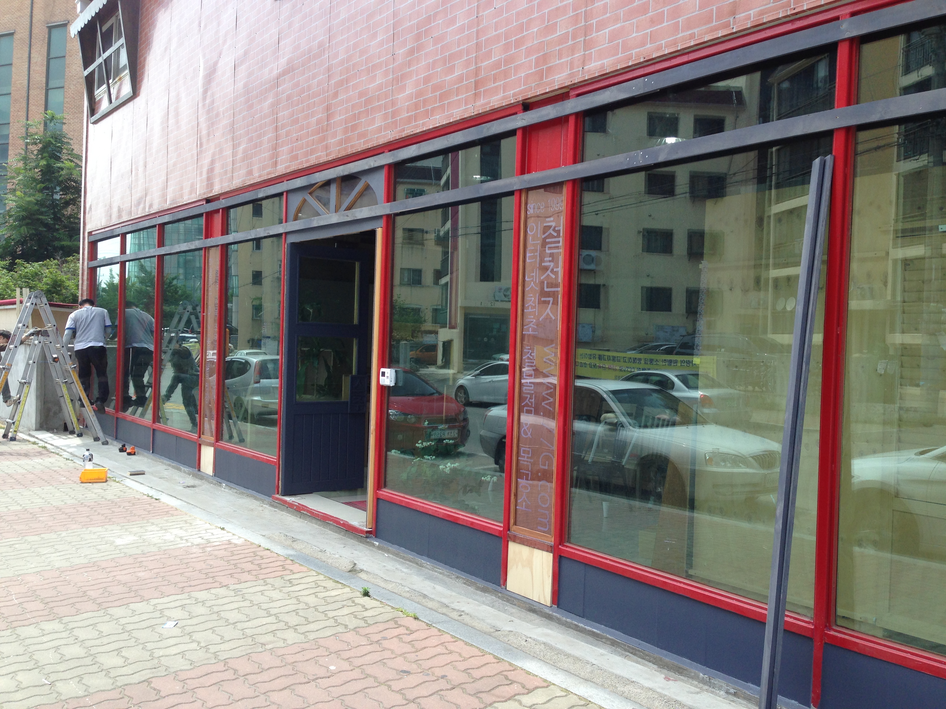 매장새시,정문문짝,창문,간판등 모두 나무로 만들었습니다.