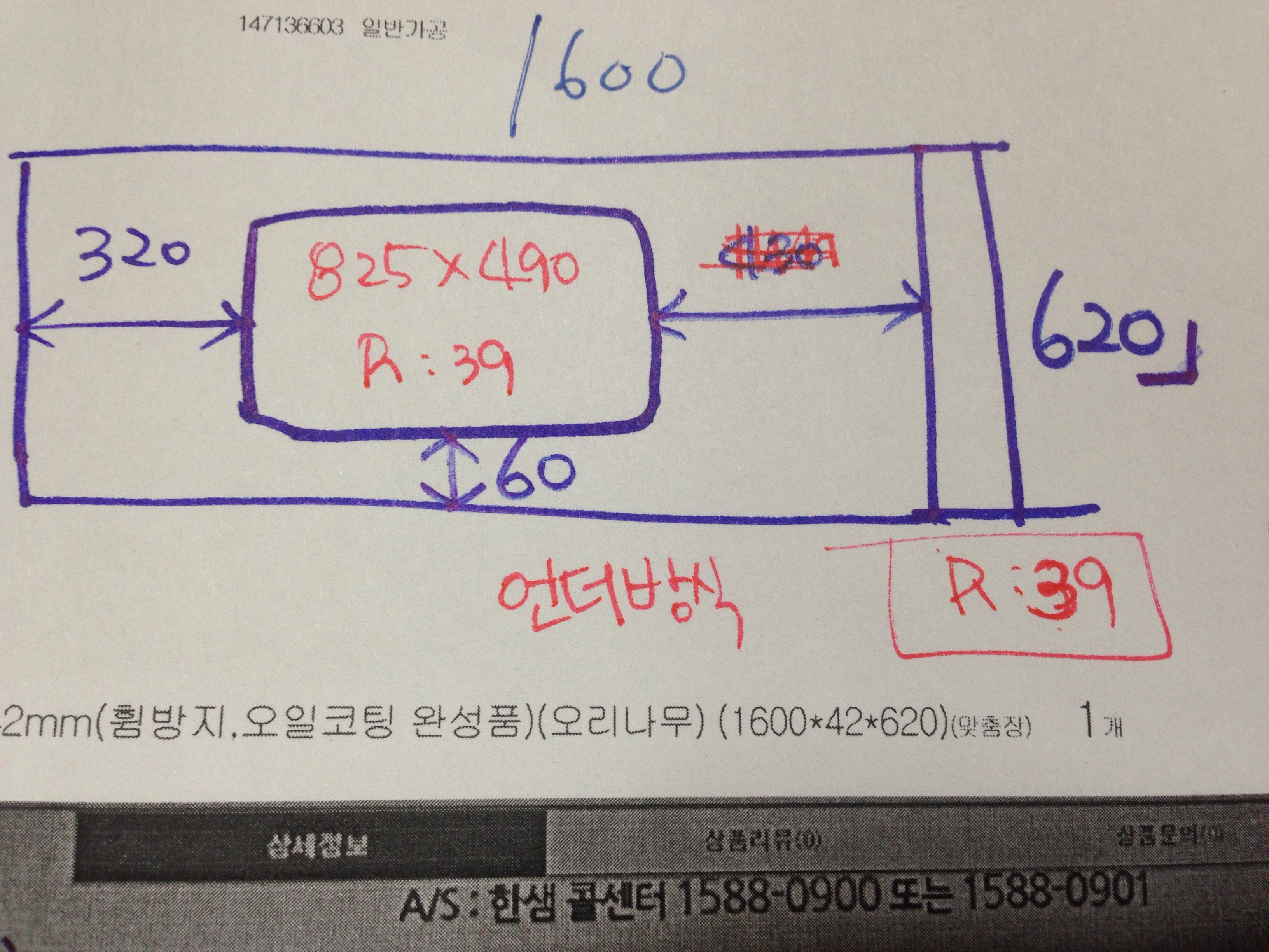 싱크대뒷턱 원목(특수목)(자작나무) (1600*50*80) 28,210원