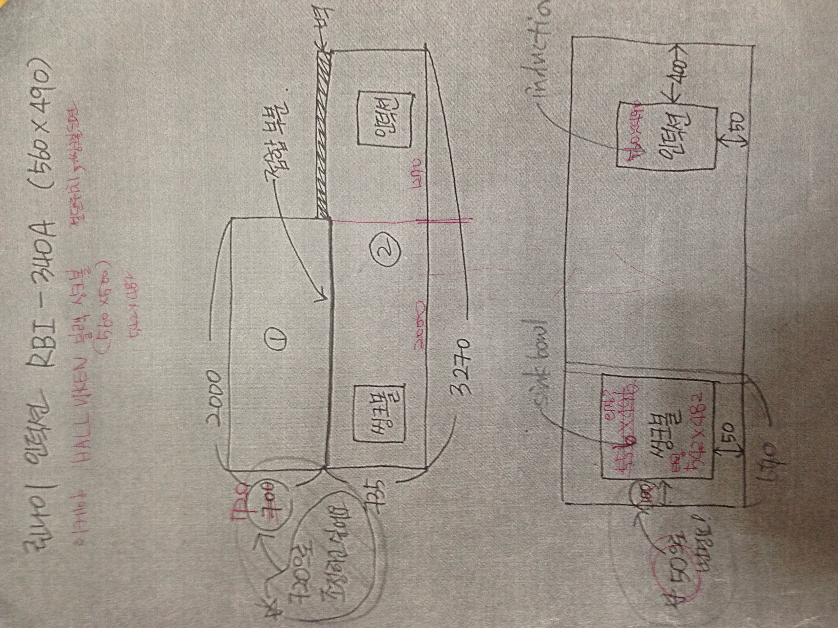 원목(특수목) 싱크대상판 쿡탑(가스렌지) 가공비용 20,000원