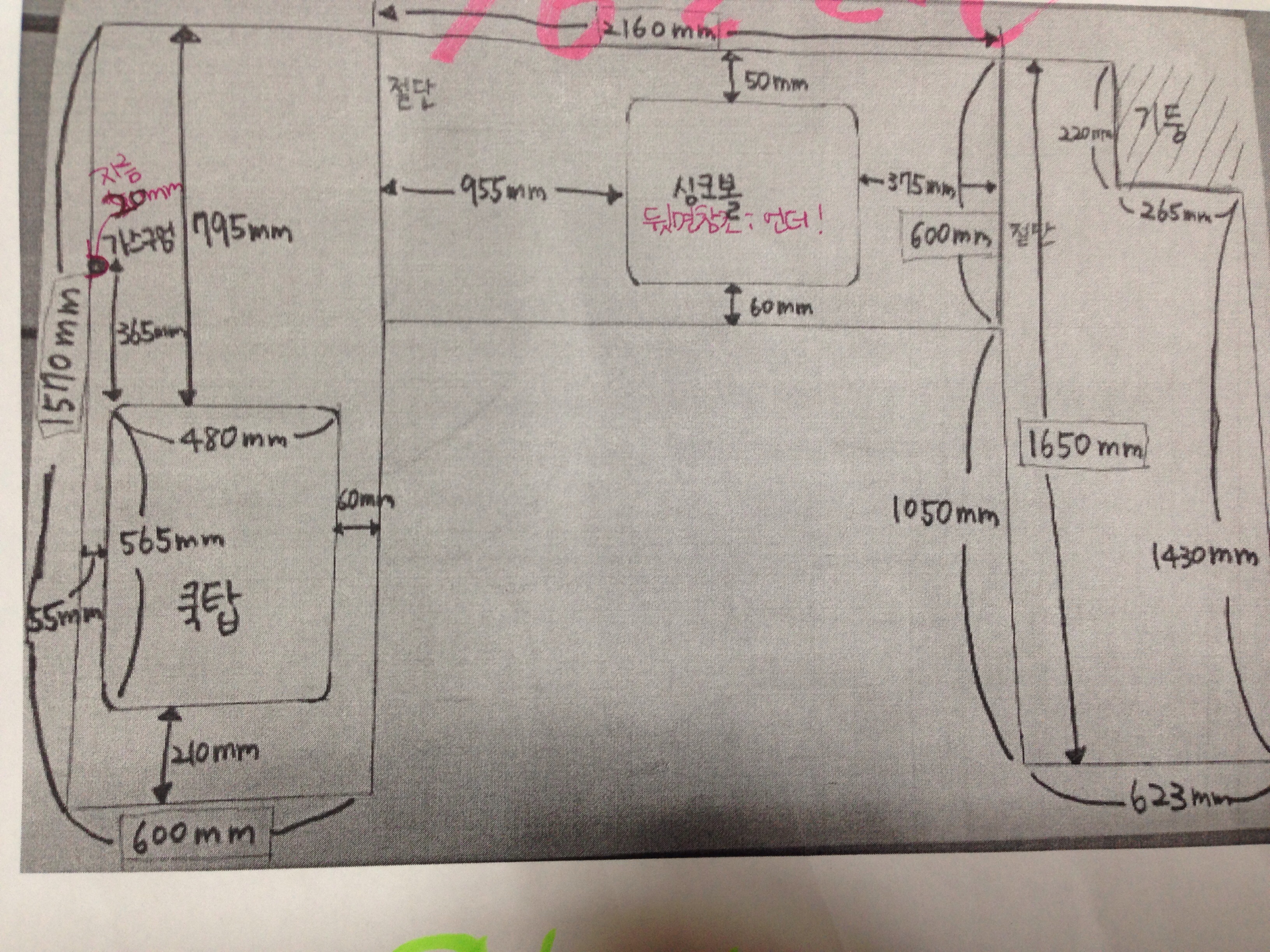 원목(특수목) 싱크대상판 쿡탑(가스렌지) 가공비용 20,000원