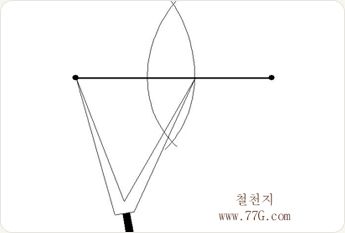 각 원호가 만나는 두점을 자로 이으면, 한선을 이등분하는 수직선을 그릴수 있습니다