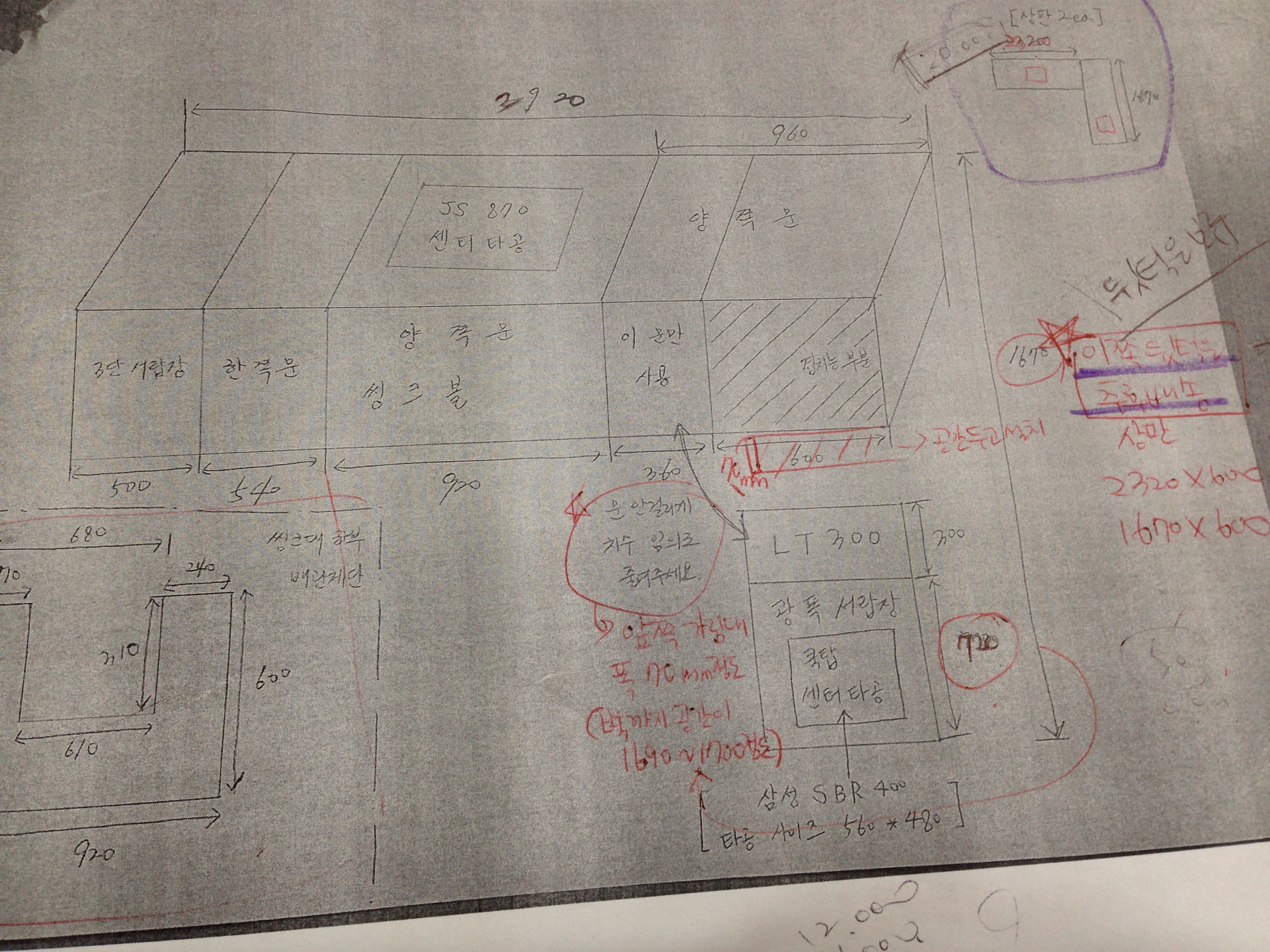 원목(특수목) 싱크대상판 쿡탑(가스렌지) 가공비용 20,000원