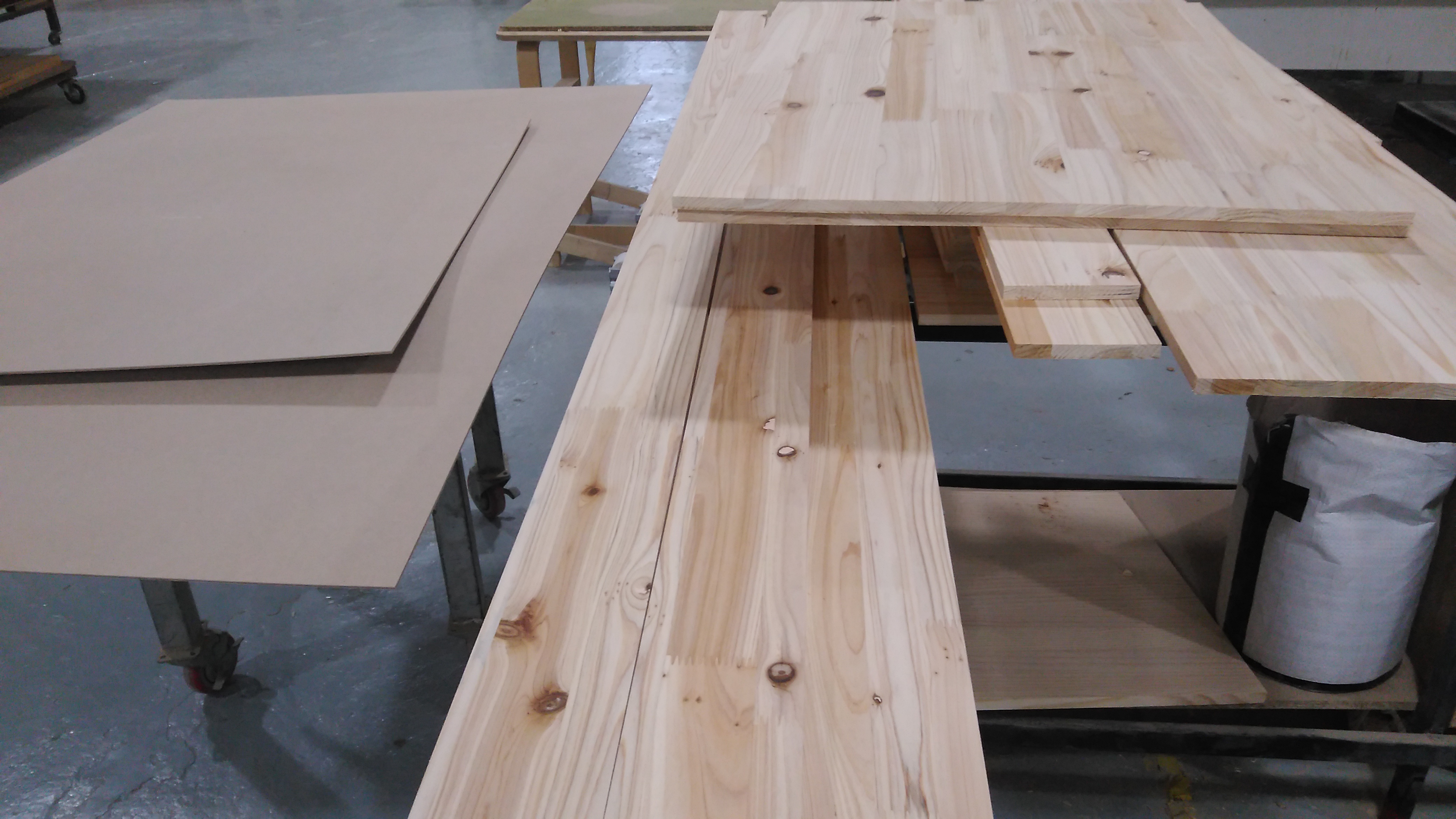 샌딩을 해서 출고한 반조립 가구 제품들이