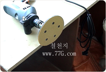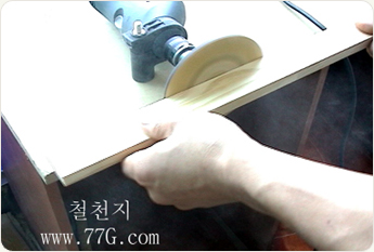 아래는 작은 목재를 원형샌더로 이용하는 모습입니다.