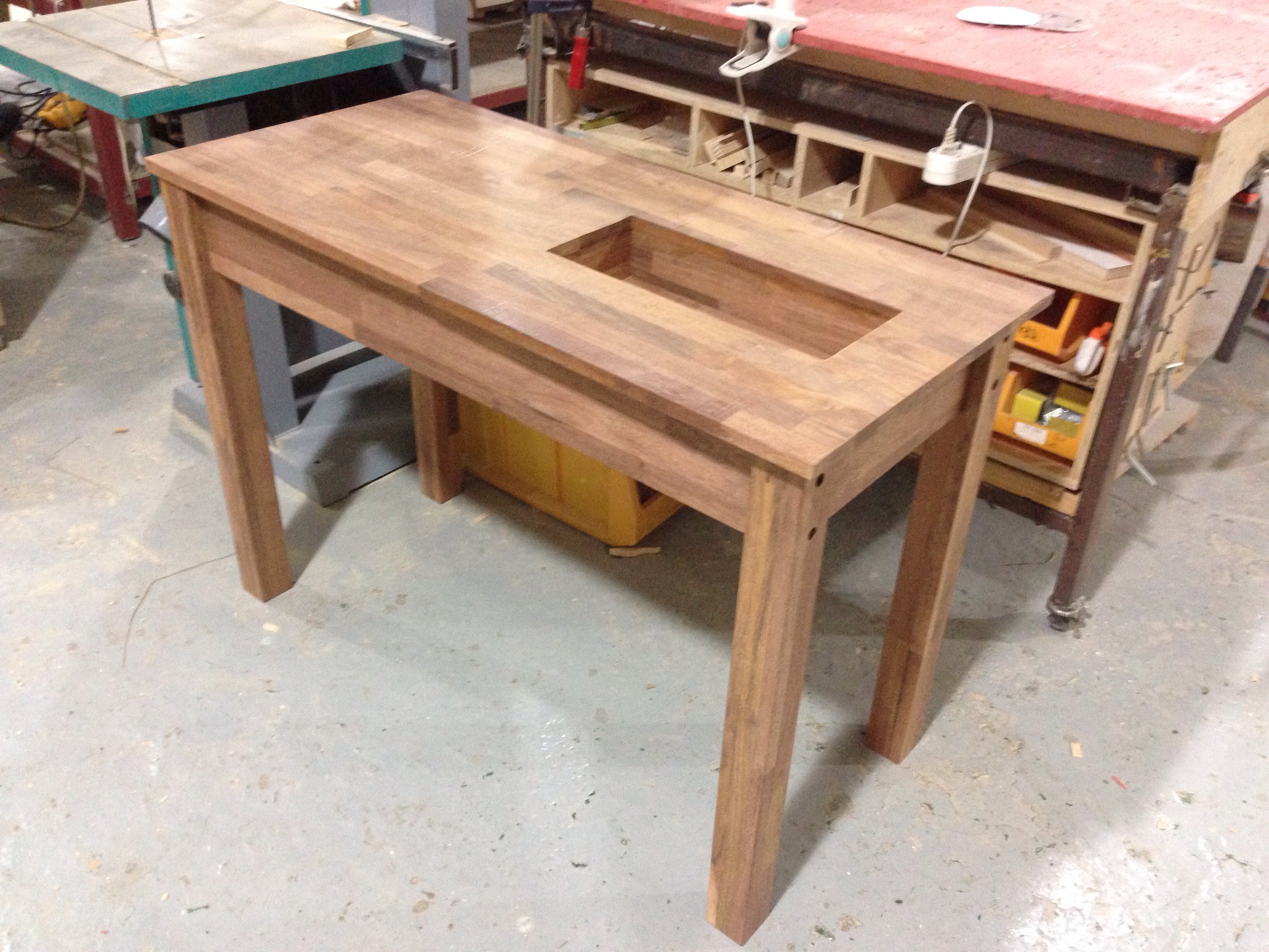 가운데 전동 테이블이 있어 테이블이 유선및 무선으로 위아래로 움직 입니다.