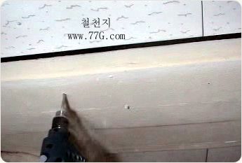 드릴을 해머 기능으로 설치 하고, 6.5mm 구멍을 천정에 뚫습니다.