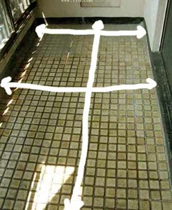 수평선은 마루가 고정되야할 면보다 26mm 정도 아래에 선을 그어 두어야 합니다.