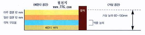 아래 사진처럼 마루면, 합판면의 두께는 각각 12mm 씩 24mm 가 정해져 있으므로,