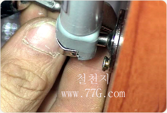 문이 90~100도로 열린 상태에서 나사못을 고정 합니다.