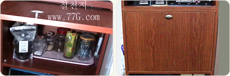쇼바를 이용한 문은 위로 열리는 문에 주로 적용이 됩니다. 살짝만 당겨도 나머지는 쇼바가 밀어 주니까요. 부드럽게 열립니다.