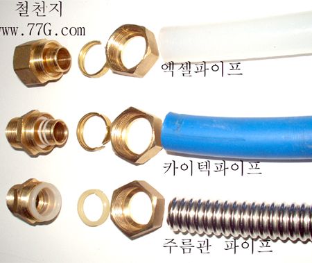 위와 같이 배관의 특징을 보면 가장 간편하게 연결을 할수 있는 부속이 주름관,엑셀,카이텍 배관 이며 DIY로도 많이 활용될수 있는 자재 입니다.