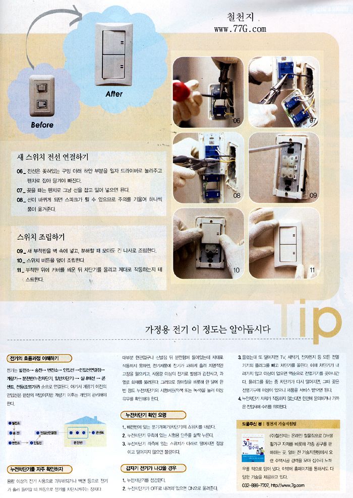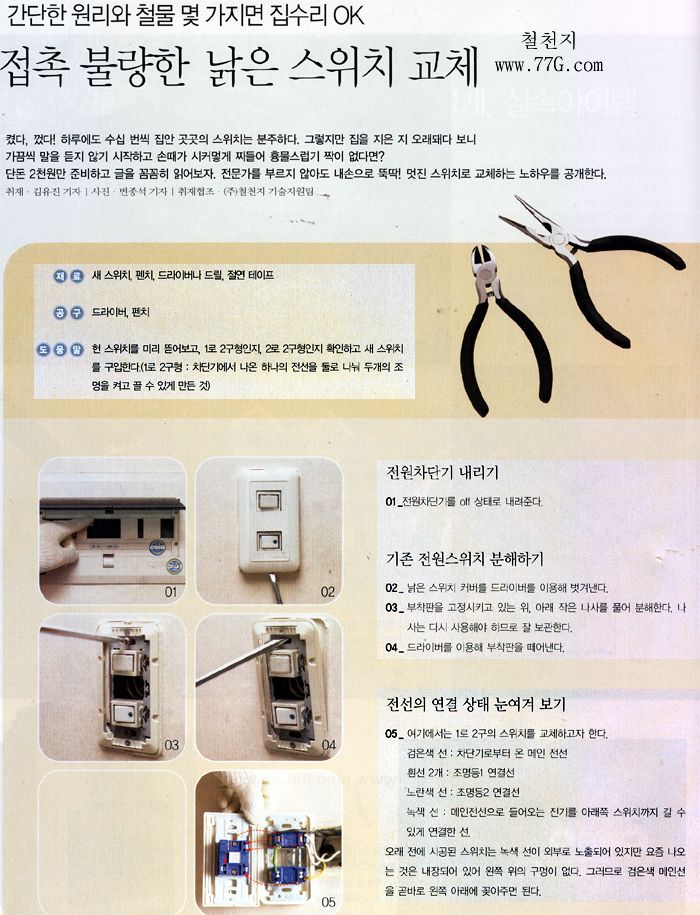 벽면 매입형 스위치 교체방법(전원속의내집 발췌)