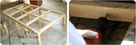 바닥다리 밑에 목재 조각이나 돌을 고여 수평을 전체적으로 마추어 줍니다.