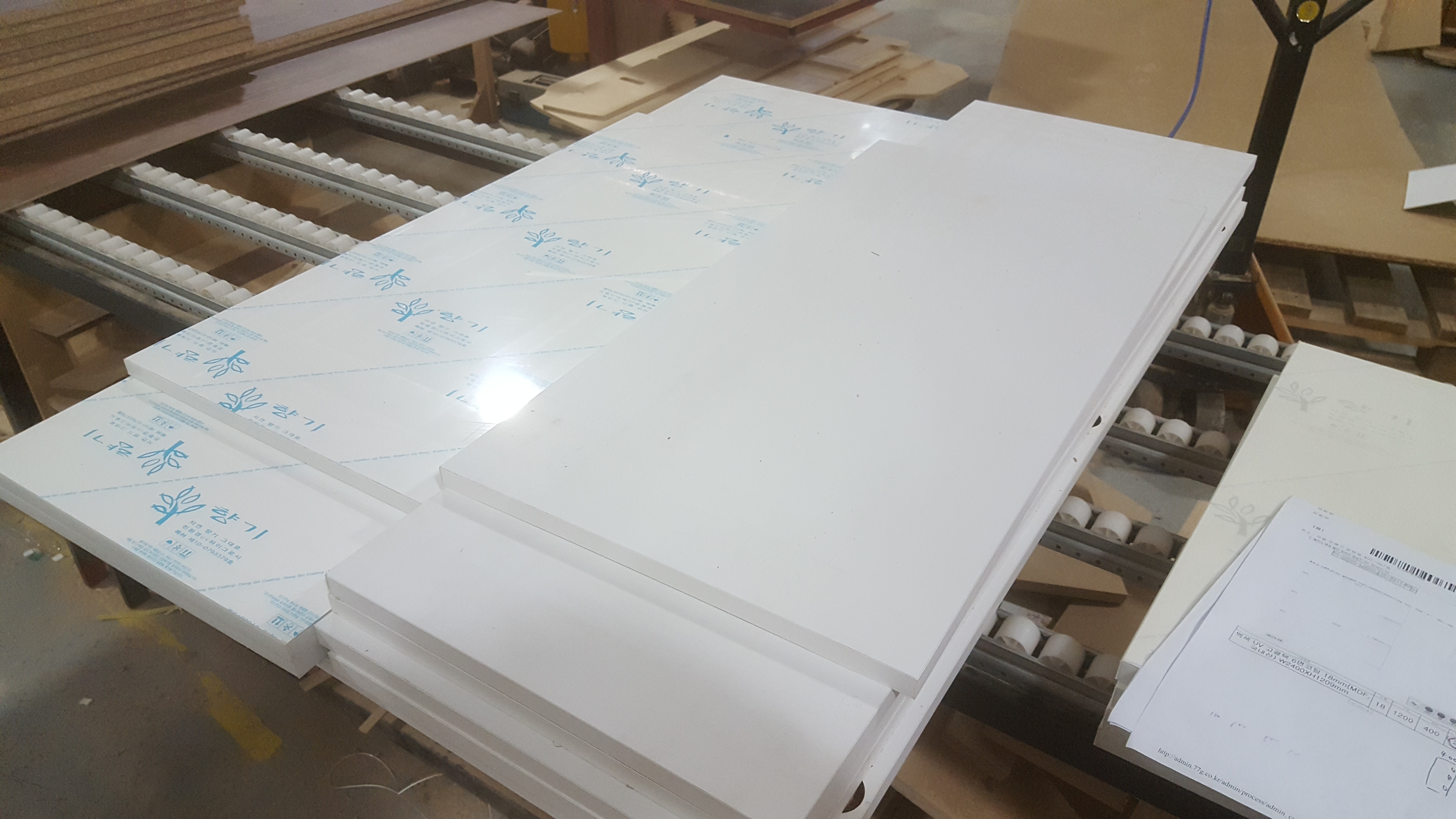 백색 UV 고광택 6면코팅 18mm(MDF,국내산) W2400XH1209mm 8,020원