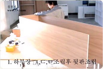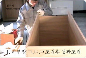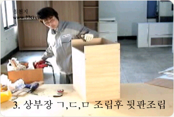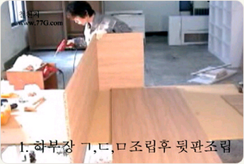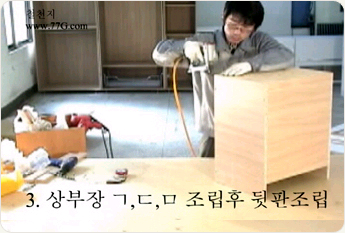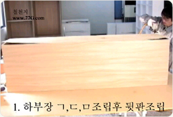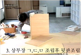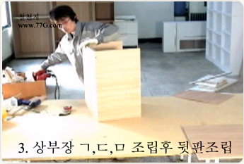 상부장을 조립 합니다. 나사못 3개를 이용하여 ㄱ 형태로 만들어 주세요.나사못은 #3.5X38mm 3개를 고정 해줍니다.