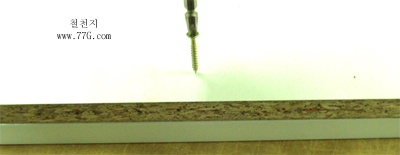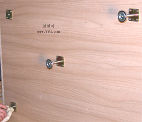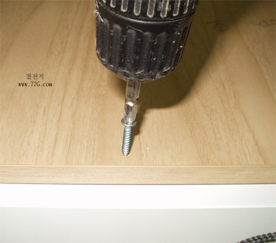 연결을 할때는 #3.5X25mm 의 나사못을 오른쪽장의 벽에서 왼쪽장쪽으로 드릴을 이용하여 고정 하면, 관통 되지 않고 두개의장이 고정 됩니다.