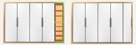 기본 크기는 400,450,500,800,900,100 으로 상호 폭이 50mm 이상 차이나는 장은 균형이 맞지 않게 보여 잘 사용하지를 않습니다.