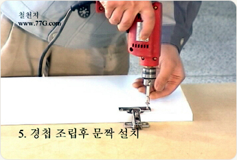위에서 경첩을 가구에 나란히 두고 가구에 고정을 합니다.
