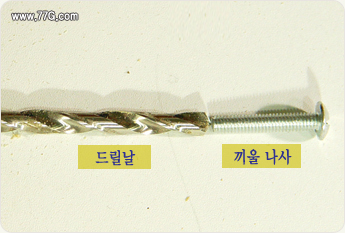 (위에 있는 나사 드릴로 한번돌리기, 아래 있는 나사 드릴로 두번돌리기) X 2