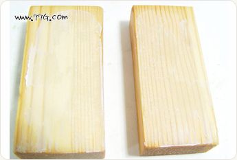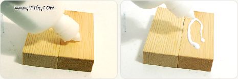 동일 수종의 목재에 2가지의 목공본드를 각각 바르고 골고루 펴줍니다.