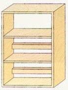 위 2단계 형태에서 2개의 선반을 빼고 양쪽의 측판을 길게 잡으면 하부의 고정력이 줄어 들어 약간 불안해 보입니다.