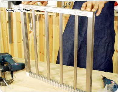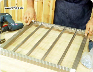 ㄷ 자로 만들어진 상태에서는 방범창 봉을 틀에 모두 끼웁니다.