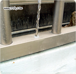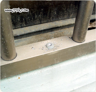 고정시 방범창 틀에 철판드릴날을 이용하여 6mm 구멍을 미리 뚫어 두고, 방범창을 설치 장소에 앉힙니다.