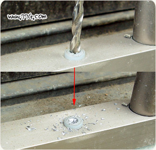 아래 사진과 같이 직결 나사를 곧장 밤벙창 연결 부분에 조립을 하게 되면. 쉽게 직결 나사가 알루미늄을 뚫고 삽입됩니다.
