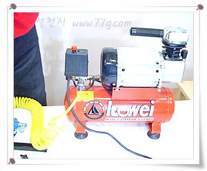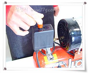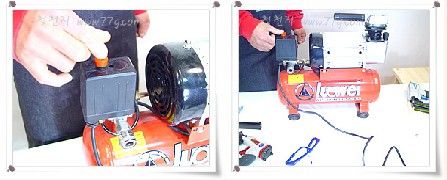 전원을 꽂고 스위치를 눌러 주면,(제품마다 스위치가 조금씩 다릅니다.) 콤푸레셔가 동작하면서 공기를 압축 합니다.