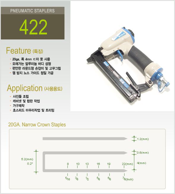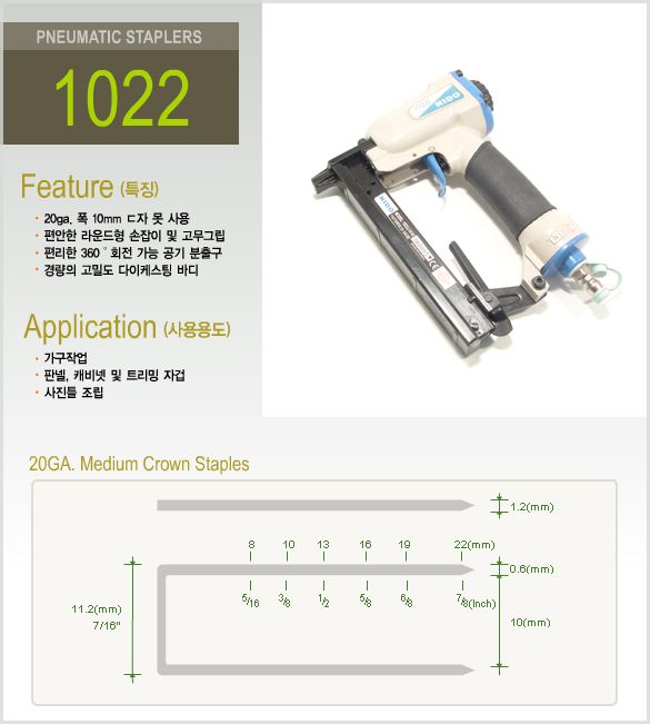 타카의 종류(제품의 두자리 숫자는 사용될수 있는 못의 최대 길이를 나타내는것으로 최대 길이보다 짧은 핀을 모두 사용할수 있습니다.)