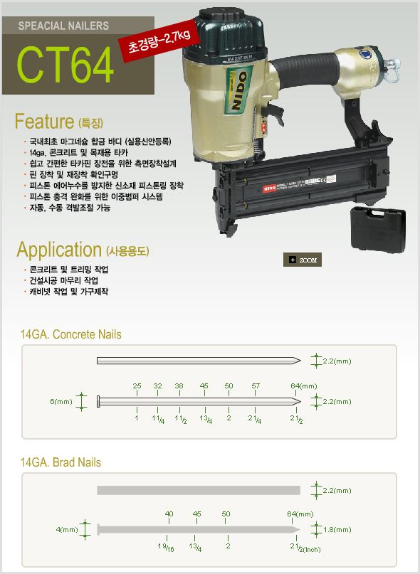 콘크리트에 고정할수 있는 타카로 콤푸레셔의 용량이 2마력 이상이 되야 합니다.