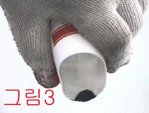 작업한 실리콘이 많이 뭉쳤을 경우는 그림3처럼 다쓴 실리콘 통의 뒷부분으로 긁어 내면 튀어나온 부분이 깍여 나가면서 매끄럽게 처리됩니다.