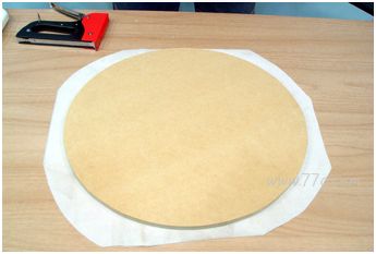 자,이제 앉을수 있는 방석부분을 만들어볼까요? 쇼파용 인조가죽을 원판보다 더 크게 사진과 같이 잘라