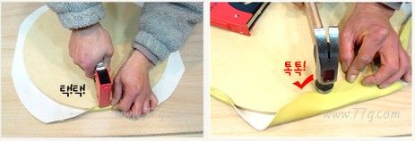 평평하게 당겨서 마무리 해주세요.잘 박아지지 않았거나,튼튼하게 고정하려면 망치로 두르려주세요.^^