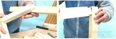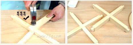홈이 파진 곳에 본드를 발라 두 나무를 X자로 껴맞춰 붙입니다.