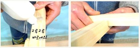 홈이 파진 다리에 본드를 발라 두동자를 껴맞춰 붙입니다.