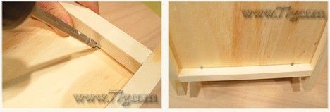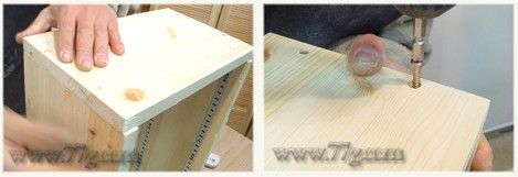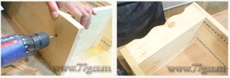 기둥, 밑판과 잘 맞추신다음 피스로 고정시켜주세요. 이때도 밖에서 안쪽으로 피스를 박아주시면 됩니다.