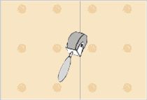 풀은 손이나 주걱으로 덩어리가 없어질 때까지 잘 저은 다음 뒤집은 도배지의 가장자리에서 가운데 쪽으로 풀칠합니다.
