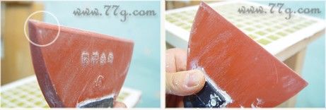 고무해라를 보면 날이 45도로 되어 있는데영~왼쪽 사진의 보이는 면이 바닥으로 가게끔하면서 발라주시고,오른쪽
