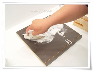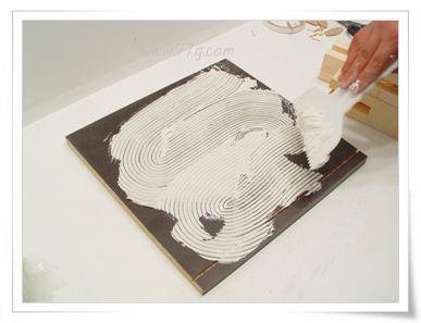톱니 흙손을 이용하여 본드를 효율적으로 바르기 위해서는 연속적인 손동작이 바릅니다.