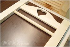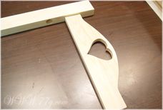 기둥을 보시면 홈이 파여져 있는데여, 그 안에 본드를 듬뿍 바르시고 하트 모양이 새겨진 나무재료를 꽂아 줍니다.