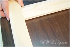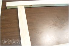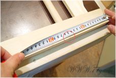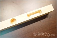 윗부분에도 홈에 봉을 끼워 넣어주신다음,이번엔 경첩을 달면 되는데여~ 줄자를 이용해 위에서 150mm 되는곳에 연필로 그어주세요~