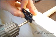 다른 파티션과 연결을 해야 하기 때문에 파티션을 세워서 그림과 같이 경첩을 다른 파티션과 잘 맞춰 피스로 고정시킵니다.