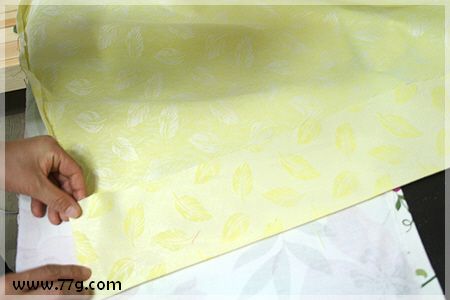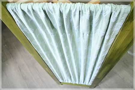 먼저 파티션에 맞게 원단을 재단한 다음 가위질난 부분은 지저분하기 때문에 사진과 같이 접어서 다리미로 다려줍니다.