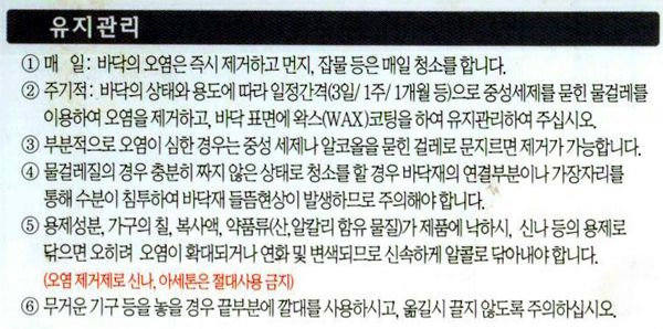 시중의 마루 제품의 표면이 결국은 플라스틱 재질로 코팅된 형태인지라. 강화 마루나, 플라스틱 재질의 마루나 내구성의 큰 차이는 없습니다.
