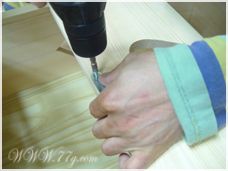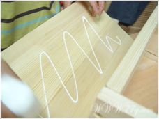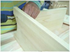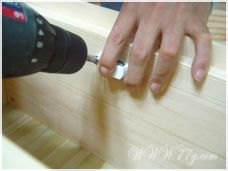 일단 옆판에 밑판과 중간선반을 고정해야 하는데여, 아래 밑판에 본드를 바르고 피스로 고정해줍니다.