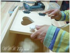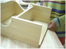 첫번째 하트찻장과 만드는 방법은 동일합니다. 문짝만 틀리니~^^ 옆판과 옆판 사이에 중간선반 고정하시고 본드는 필수~피스고정으로 마무리~