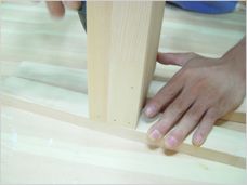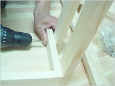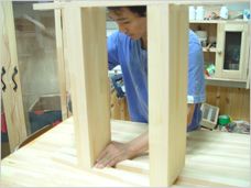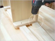땅에 뜨지 않게 하기 위해서 사선으로 자른것입니다. 선반 하나를 바닥에 두고 기둥을 선반 옆으로 고정합니다.